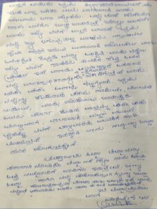 ನಾಪತ್ತೆಯಾದ ವೆಂಕಟೇಶ ಬರೆದಿಟ್ಟ ಪತ್ರ